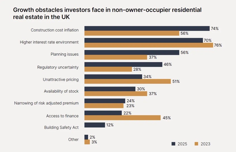 Regulatory headaches have also hit confidence, with nearly half (46%) of investors citing regulatory uncertainty as an obstacle to investing in non-owner-occupier residential real estate, nearly double the 28% in the previous report in 2023.